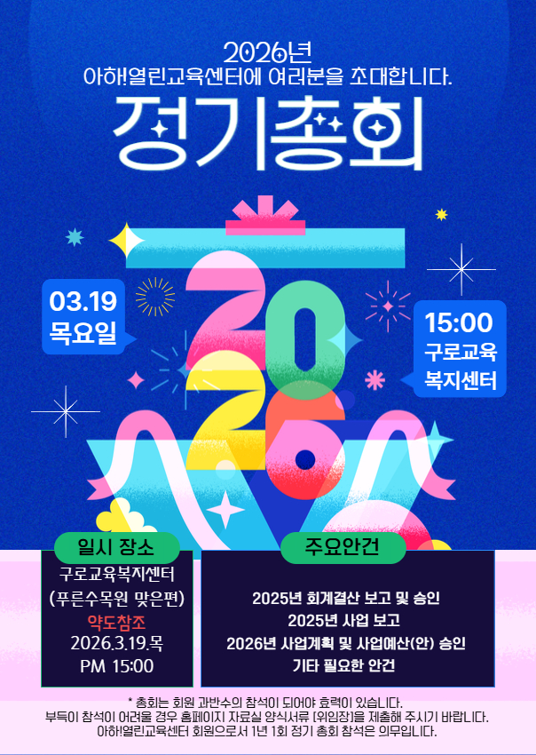 2026년 3월 19일 아하!열린교육센터 제17차 정기총회 공고